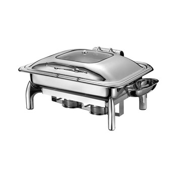 Plat de chauffe-plat hydraulique à couvercle roulant rectangulaire commercial 9L, chauffe-buffet en acier inoxydable, certifié NSF
